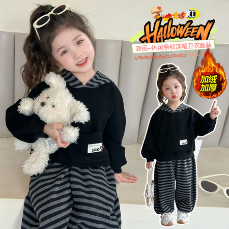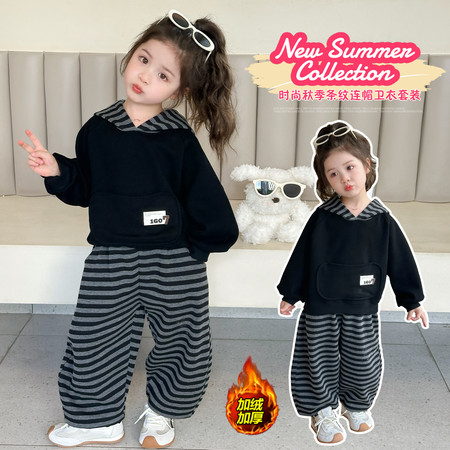 韩嘟服饰&黑色条纹卫衣套装-加绒